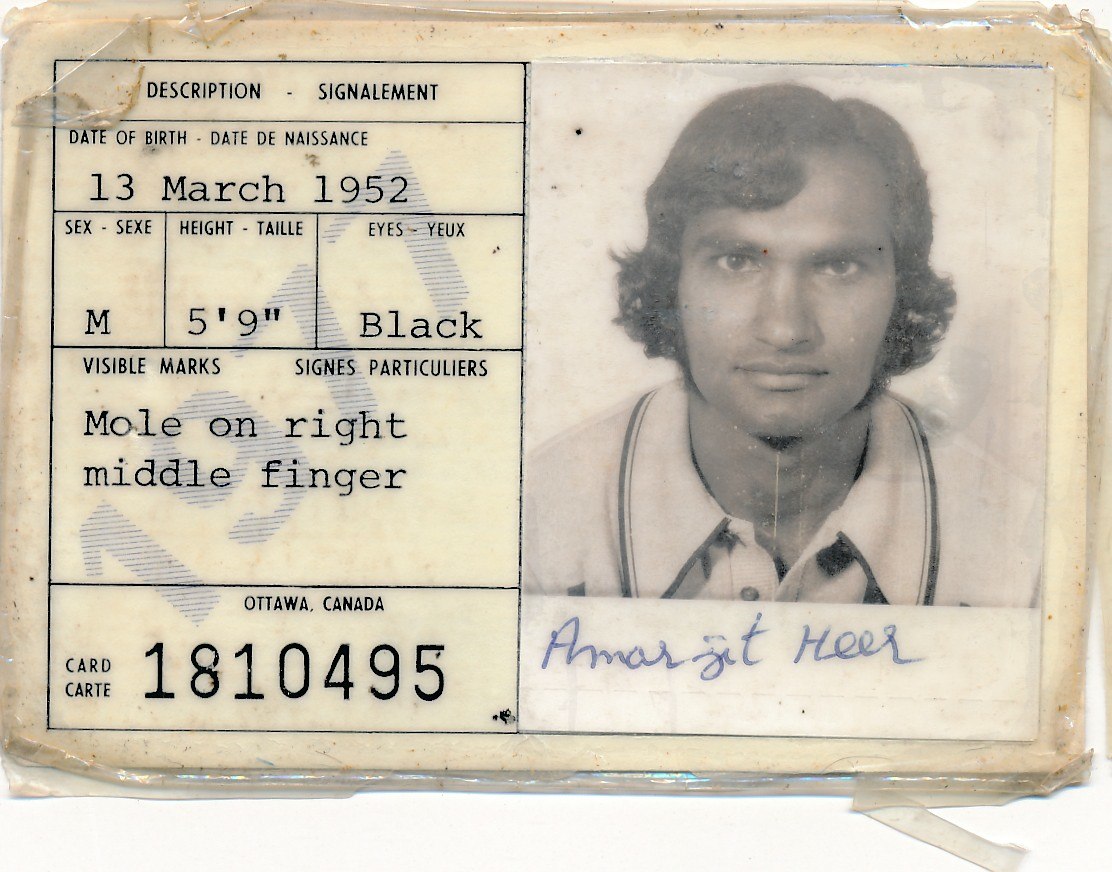 Amarjit Singh Heer was born on March 13, 1952 in Kharhacharwar, Punjab, India. He was a student at the Government College of Hoshiarpur where he completed his Bachelor of Arts and Master of Arts education. He came to Canada in August 1972 as a visitor and was able to immigrate based on the point system that was in place at the time. Amarjit Singh became a Canadian citizen soon after his arrived in 1975. He began working in the saw mills 4-5 months after he arrived in Canada. He was married in 1979 in India whereupon his wife came and joined him in Canada soon after.