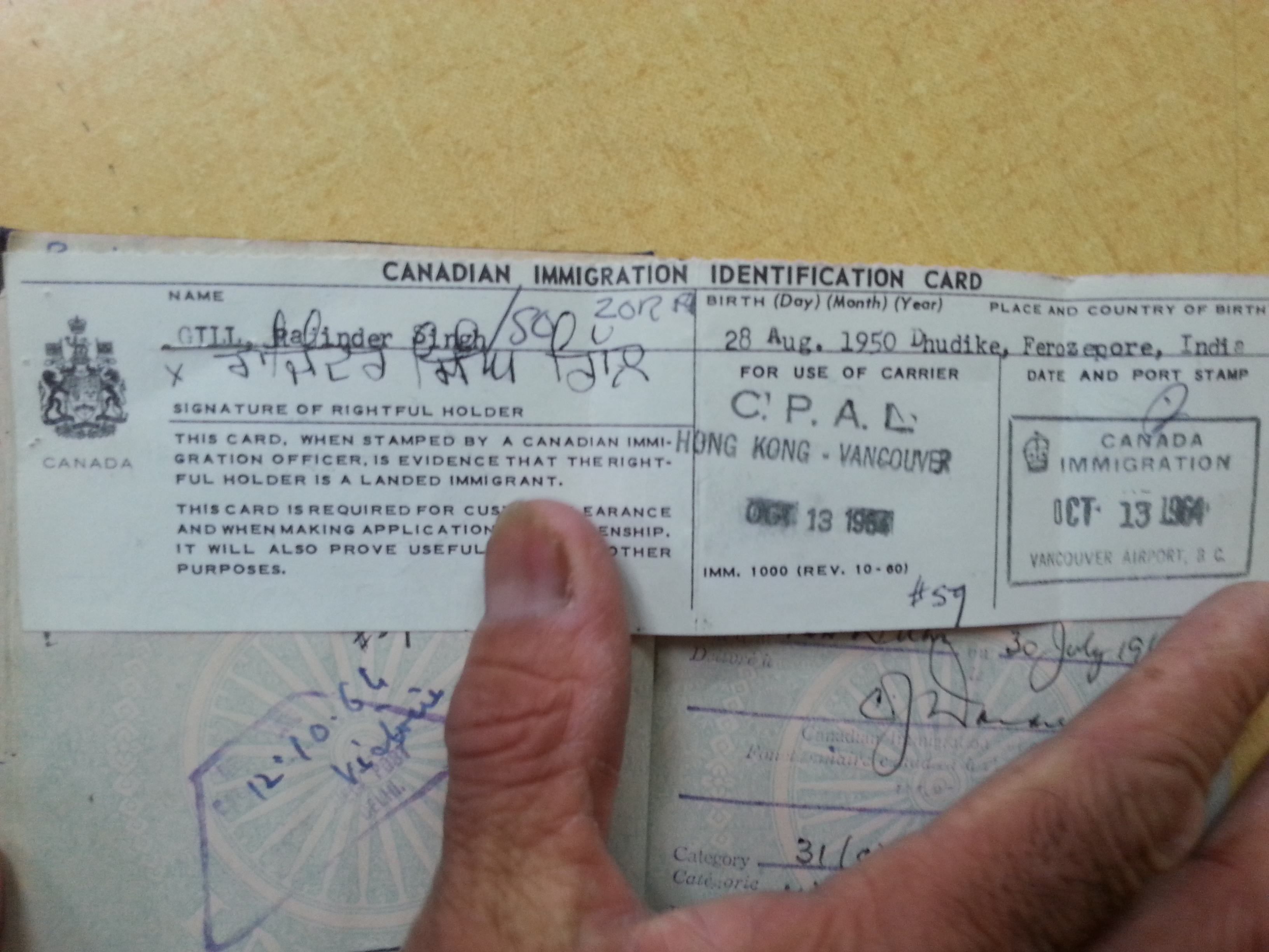 Rajinder Singh Gill was born on August 28th, 1950 in village Dhudike, District Faridkot located in Punjab, India. He immigrated to Canada under the family class basis in 1964. His grandfather, Dharam Singh Gill had already been living in Canada 1928 and then his father Zora Singh came to Canada in 1959. Zora Singh returned back to India in 1963 and brought Rajinder Singh with him to Canada in 1964. He then received his Canadian citizenship in 1965 because if one’s parents were Canadian Citizens, it was a much easier process.