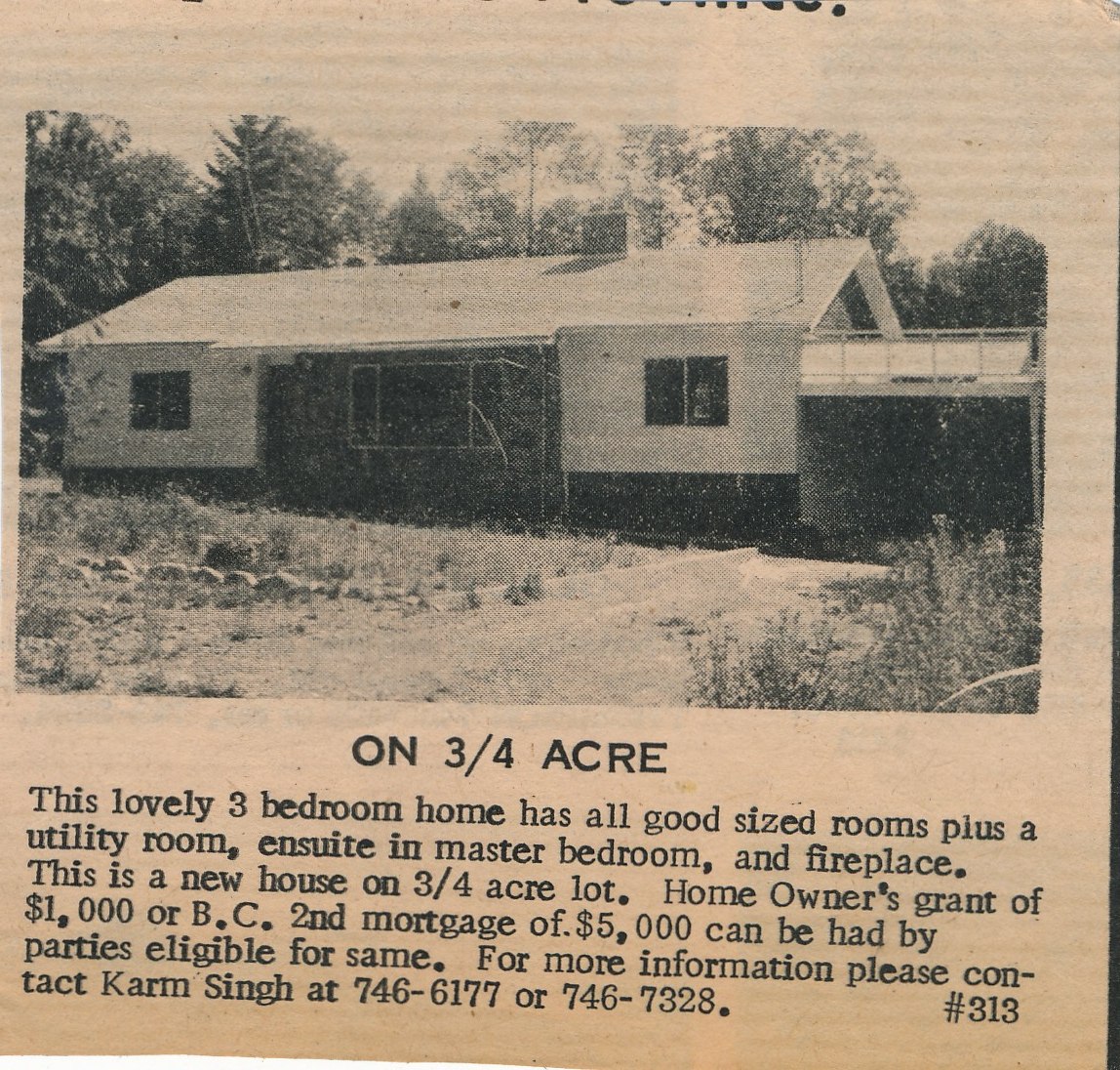 When Sukhdev Singh visited India in order to be married at the age of 21, he remained there for one year. Shortly after his arrival back to Canada, Sukhdev Singh’s wife and their now young baby son would also join Sukhdev Singh. Even when Sukhdev Singh’s wife arrived to Canada, she also attended school for a short time as Sukhdev Singh realized the value in learning English. Sukhdev Singh also encouraged his wife to dress in western attire, i.e. dresses, skirts, pants, etc., so she would be more comfortable in Canada. Upon the arrival of Sukhdev Singh’s small family, Amar purchased a house in Lake Cowichan for $5000. The entire family (Amar, Sukhdev Singh, his wife and son) lived together for fifty years before Amar retired permanently and moved back to India. During this time, Sukhdev Singh continued to work in Youbou for a short time, but then began working at Honeymoon Bay where he would remain for the next thirty years. At Honeymoon Bay, Sukhdev Singh was able to do a range of jobs including: grading, marking, plane shafting, etc. as he had attained his grading certificate. The mill at Honeymoon Bay was unionized, employing approximately 800 people. During a period of lay off time, Sukhdev Singh also tried logging work but found it very difficult and dirty as we he would get very wet, etc.